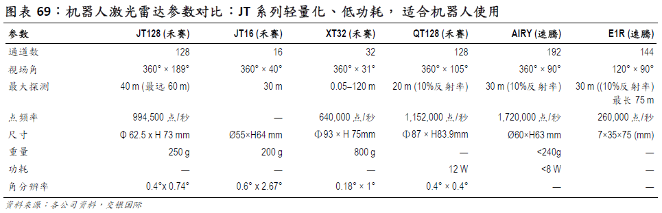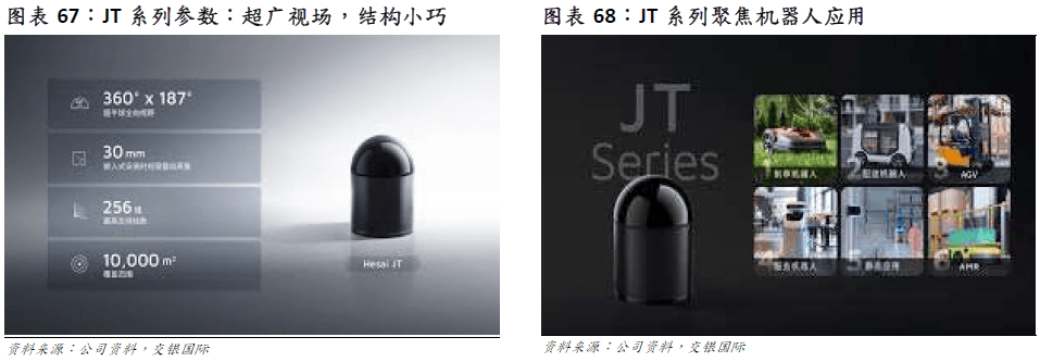 禾赛科技正在机械人激光雷达范畴持续加大结构,依托其正在从动驾驶范畴堆集的焦点手艺和量产能力,积极拓展非车载市场,特别是办事机械人取挪动机械人(AMR/AGV)等高增加使用场景。2025 年 1月,禾赛发布专为机械人使用场景设想的 JT 系列激光雷达。JT 系列 3D 激光雷达具备三大焦点劣势:1)具有超广视场,支撑 360°×189° 的笼盖范畴,可实现接近完整的空间感知,很是适配对感知要求极高的人形机械人取办事型机械人。