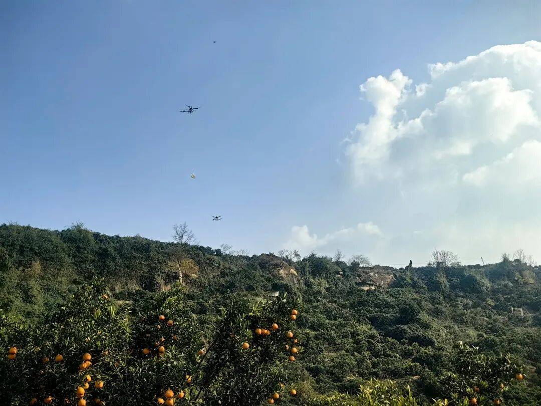 这是达州开展的规模化无人机柑橘集运试点。当全国战书两小时的功课中,无人机累计运输柑橘10吨。初步测算,比拟保守人力搬运,可节流劳动力成本3000余元,并降低了果实毁伤。